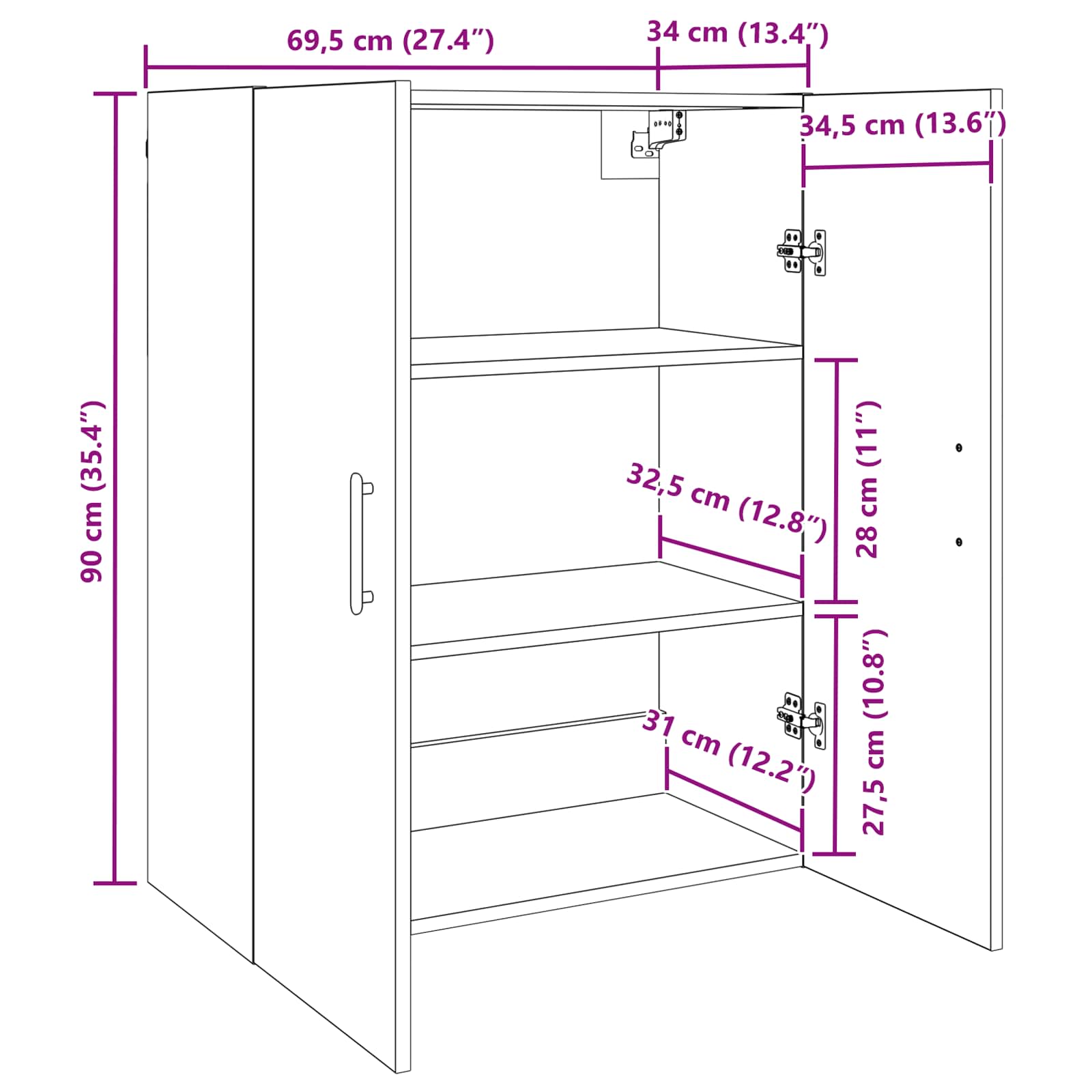 Armário de Parede 2 pcs Carvalho Artesanal 69,5 x 34 x 90 cm
