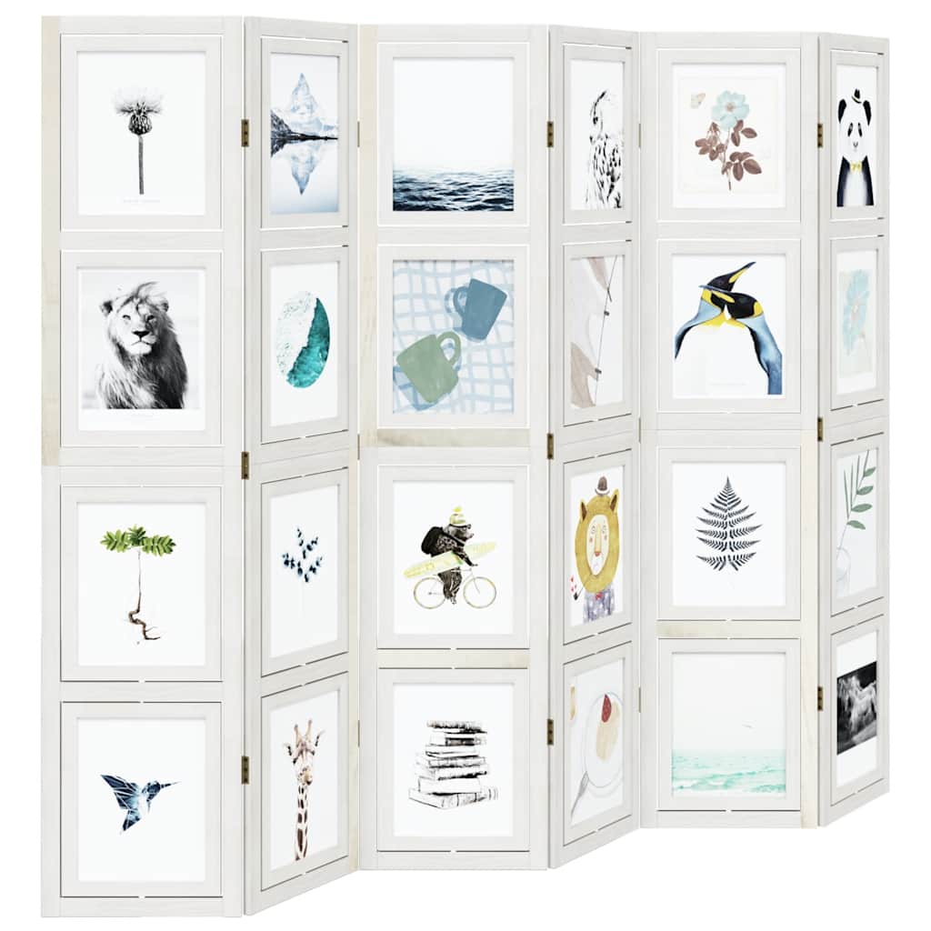 Biombo com 6 painéis madeira de paulownia maciça branco