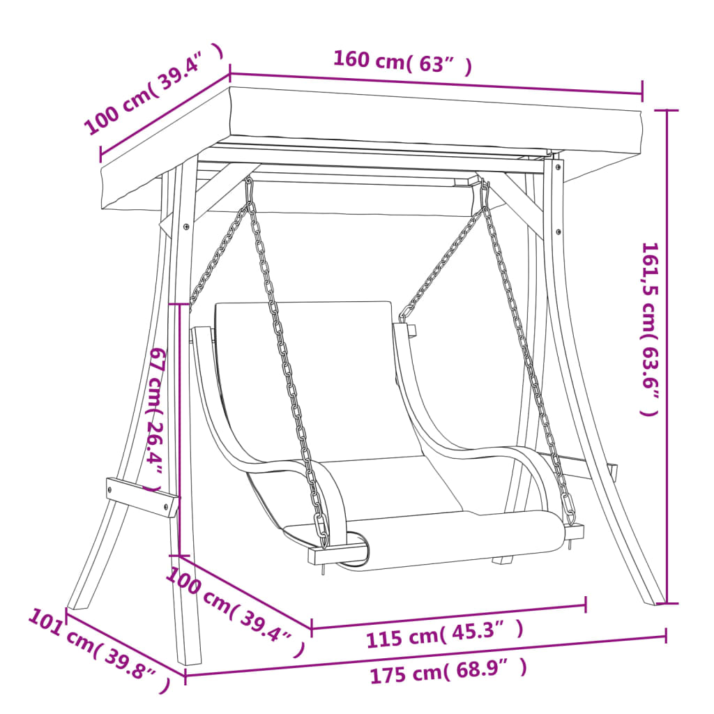 Cadeira baloiço c/ almofadão e toldo madeira de abeto maciça