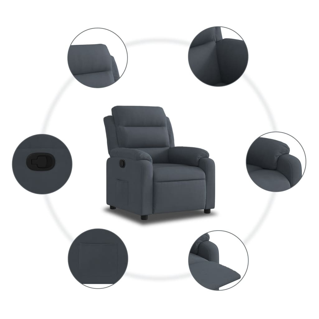 - Função de reclinação manual: esta poltrona reclinável possui uma pega no lado direito. Pode ajustar manualmente o encosto e o apoio de pés em qualquer posição, de acordo com as suas necessidades de conforto, ao puxar a pega. Este recurso permite uma inclinação máxima de 135 graus. Além disso, o encosto pode voltar para a posição original rápida e facilmente se puxar a pega.