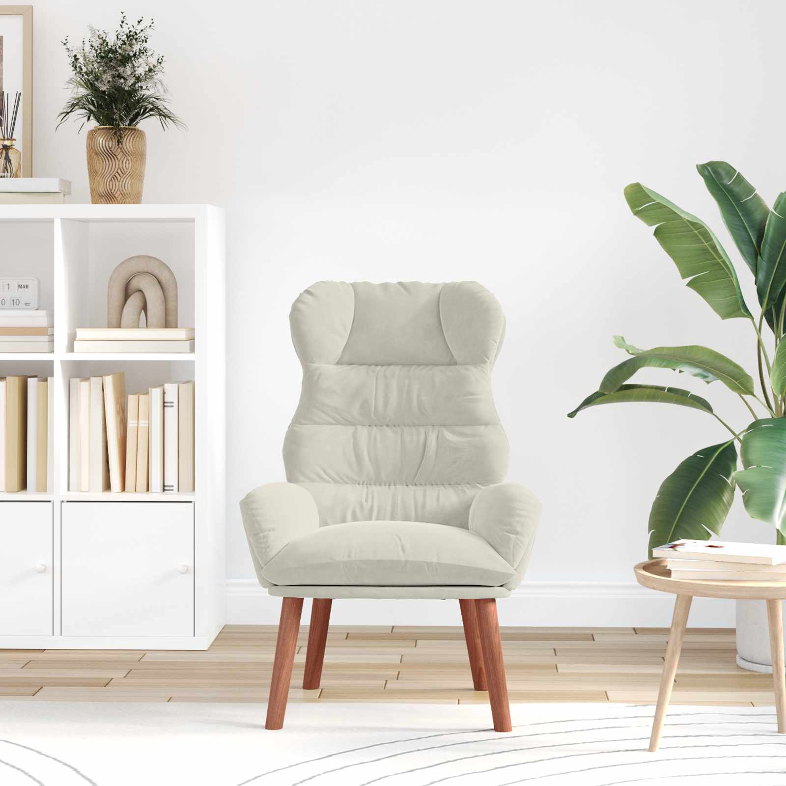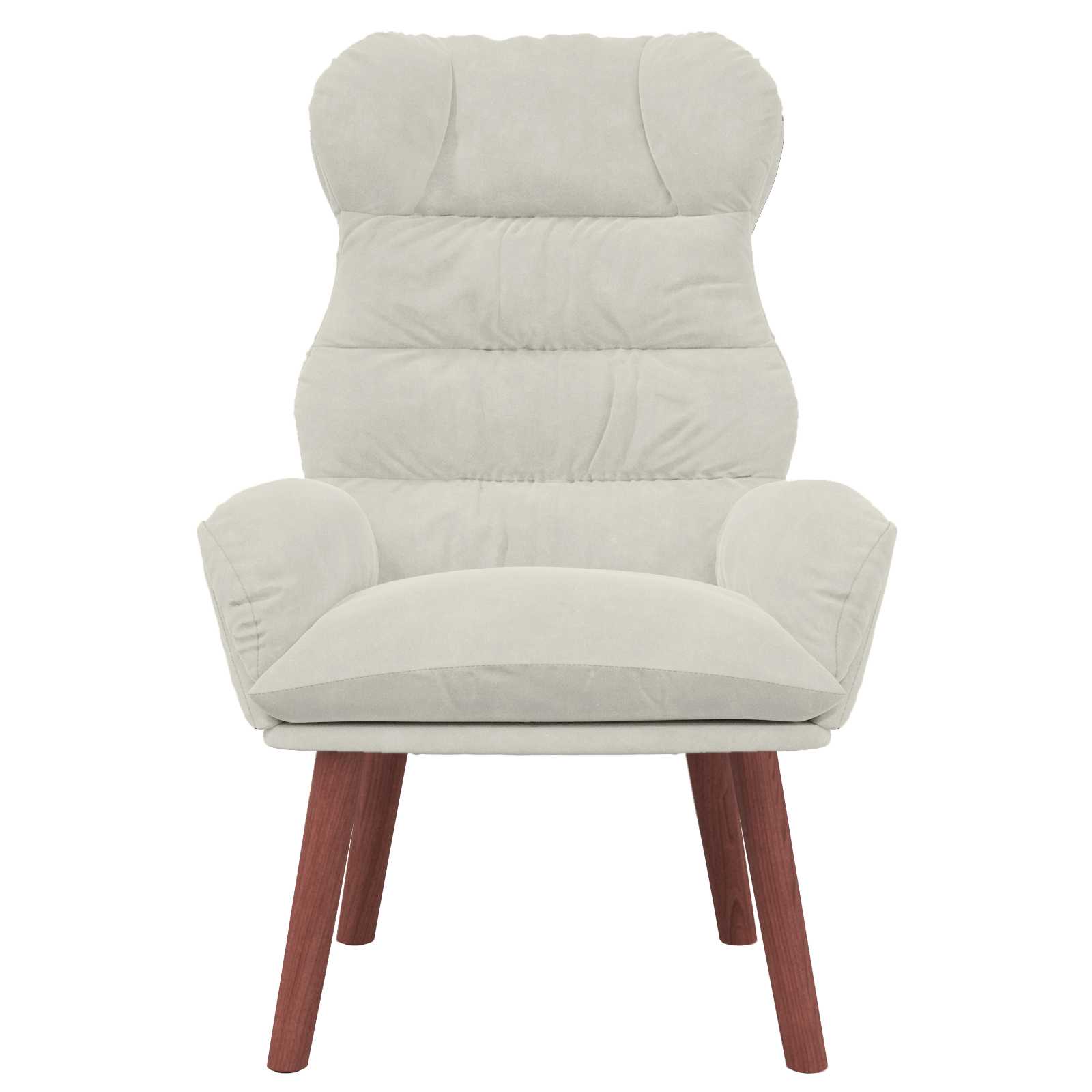 - Pernas de Madeira de Borracha Resistente: Com pernas robustas de madeira de borracha, essa poltrona garante suporte e firmeza. A naturalidade da madeira proporciona estabilidade, suportando o uso diário tranquilamente. O acabamento marrom combina bem com o veludo, trazendo um toque caloroso ao espaço.