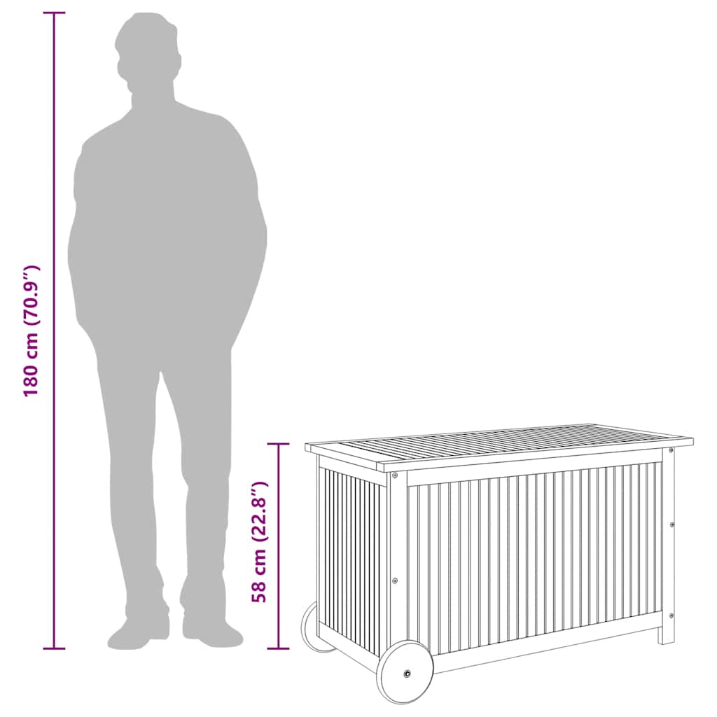 Caixa arrumação jardim c/rodas 90x50x58cm madeira acácia maciça