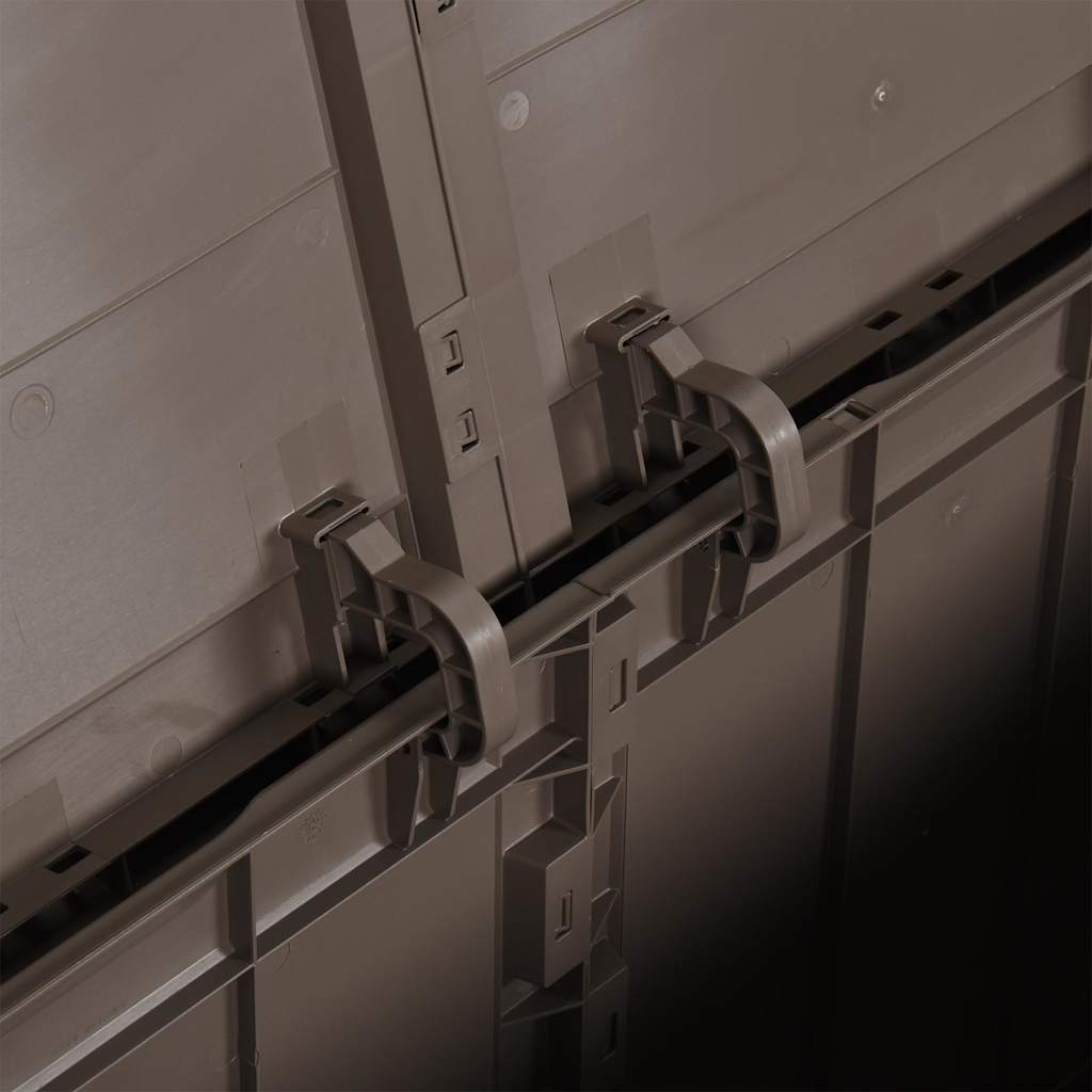 A arca de arrumação é feita em 100% PP, tornando-a resistente às intempéries e aos raios UV, leve e fácil de deslocar. A caixa de arrumação para jardim apresenta um design discreto, mas intemporal, e combina perfeitamente com a decoração do seu exterior. A caixa de arrumação para jardim oferece um amplo espaço de arrumação para manter almofadões, almofadas e outros artigos domésticos ou de jardim ao seu alcance.