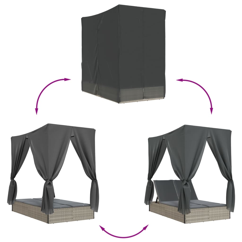 Espreguiçadeira dupla c/ teto e cortinas vime PE cinzento-claro