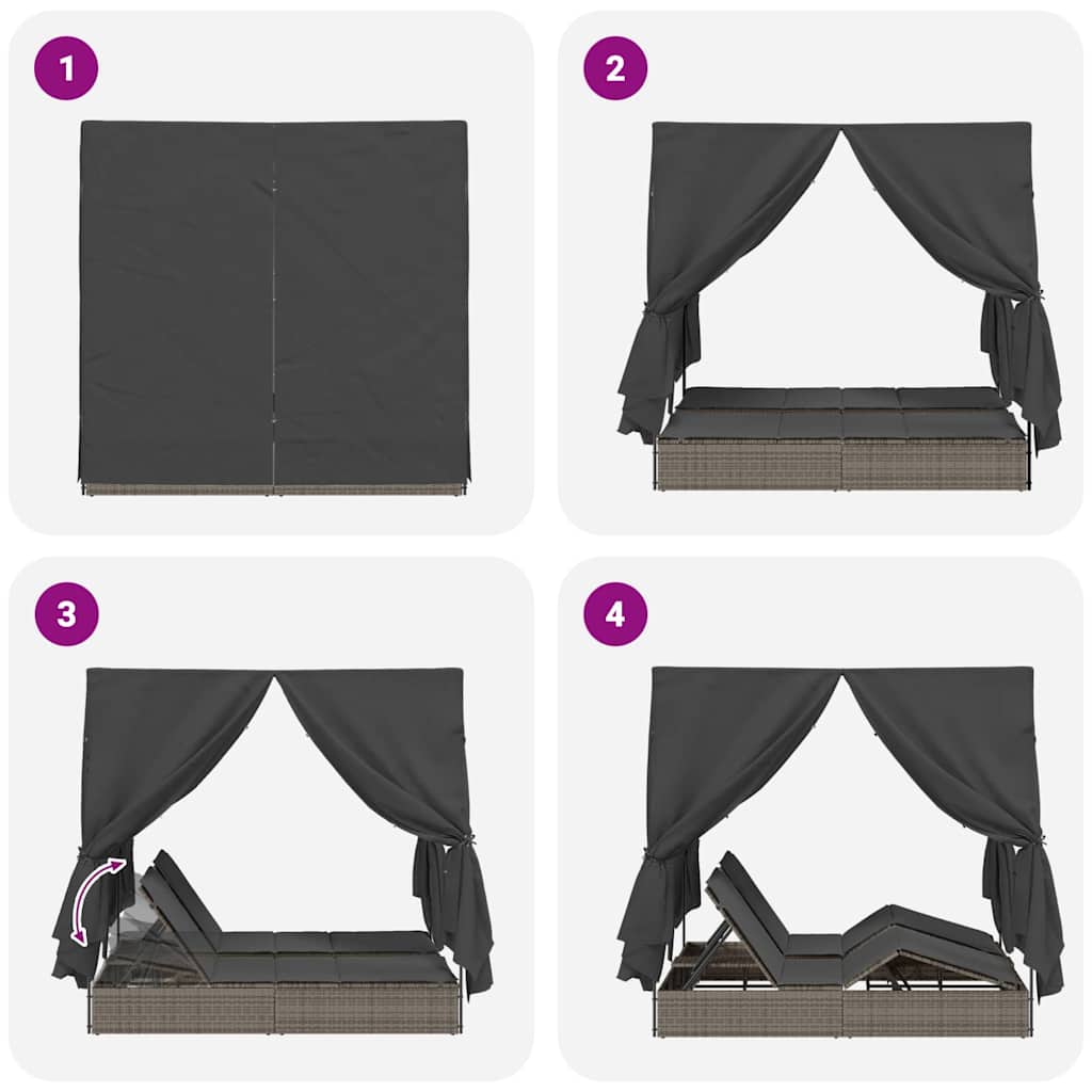 Essa espreguiçadeira dupla ao ar livre mistura estilo e utilidade, ótima pra relaxar em jardins ou varandas. Com um design elegante, é feita de vime PE que dá um toque moderno e tem uma estrutura resistente de aço, garantindo uma opção luxuosa e prática pra você aproveitar o lado de fora.Com linhas suaves e uma estética moderna, essa espreguiçadeira é perfeita pra qualquer espaço externo. Com seu telhado e cortinas, cria um cantinho todo seu ao ar livre. O espaço garante conforto pra duas pessoas, sendo ideal pra casais ou amigos. Seja tomando sol ou aproveitando um tempo à sombra, essa espreguiçadeira atende a todas as necessidades e preferências.