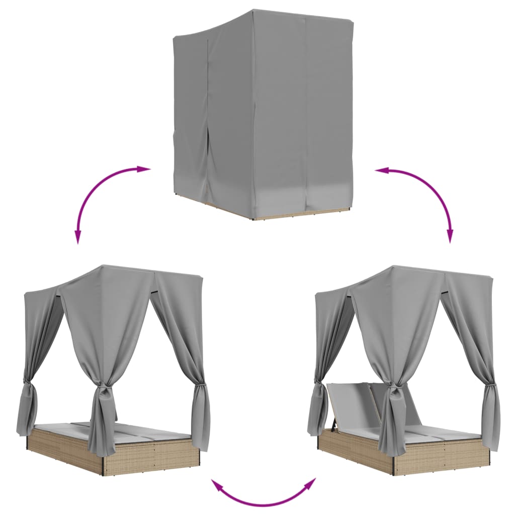 Espreguiçadeira dupla com teto e cortinas vime PE bege