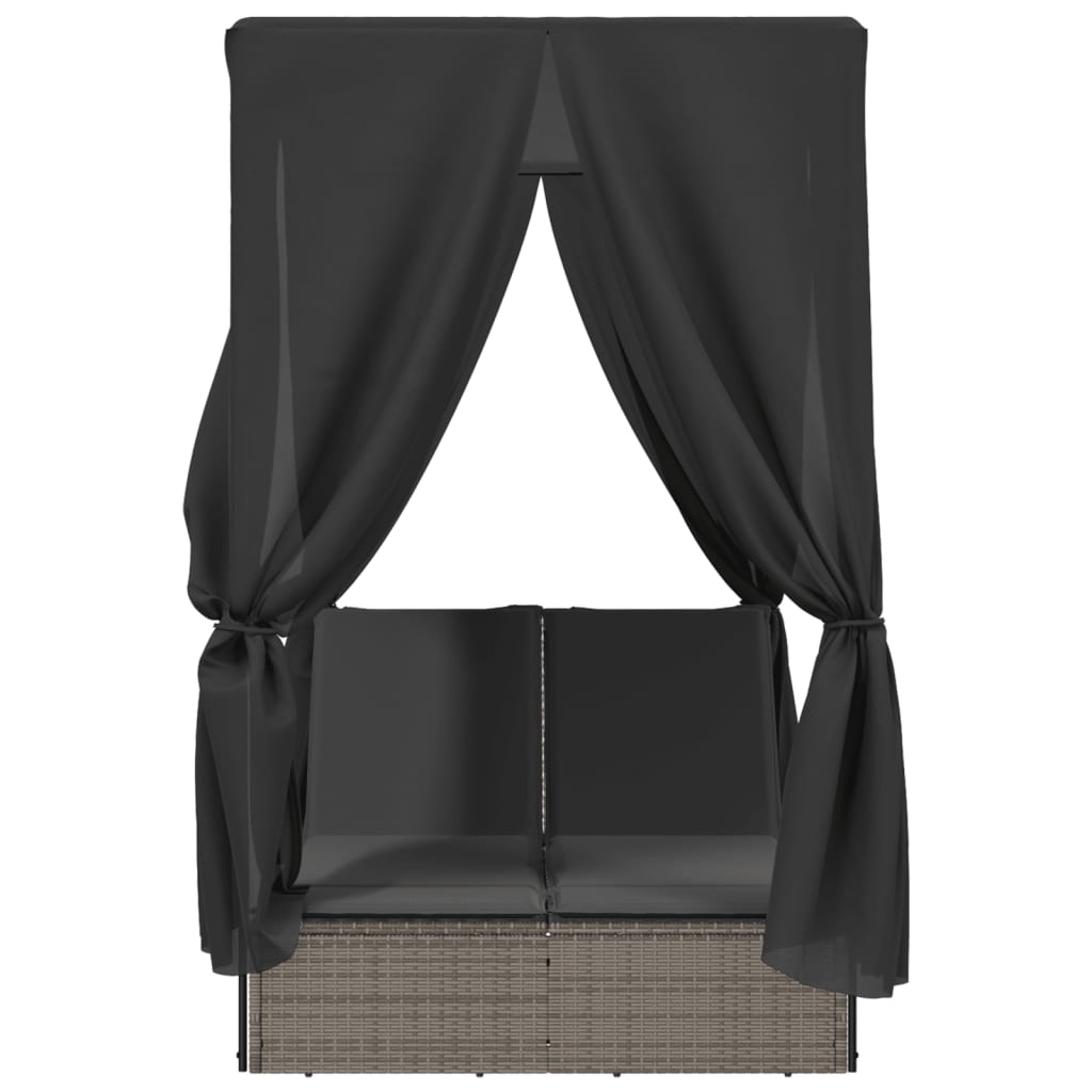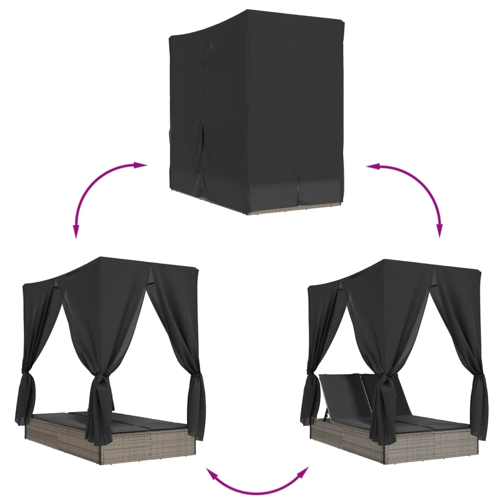 Espreguiçadeira dupla com teto e cortinas vime PE cinzento
