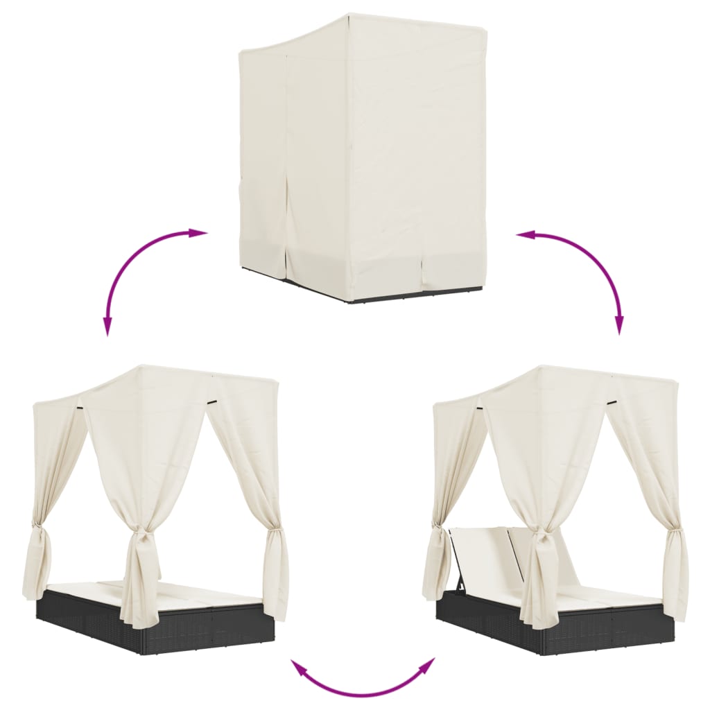 Espreguiçadeira dupla com teto e cortinas vime PE preto
