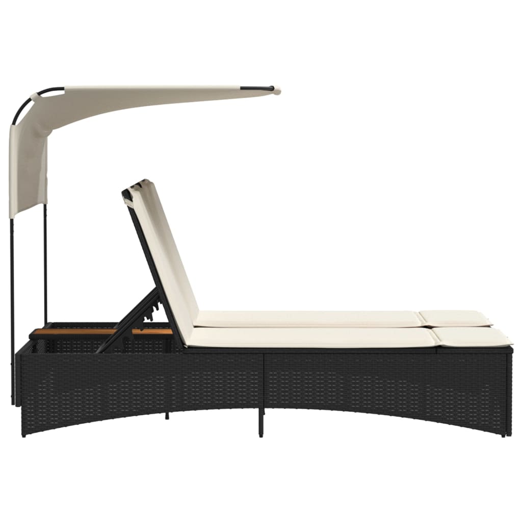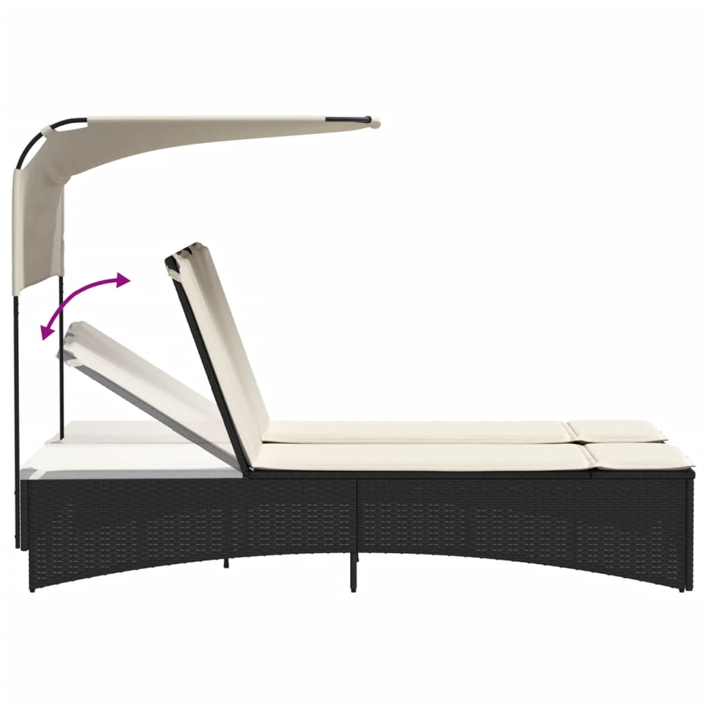 Espreguiçadeira dupla com toldo e almofadões vime PE preto