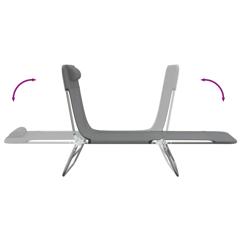 Espreguiçadeiras dobráveis 2 pcs textilene e aço cinzento