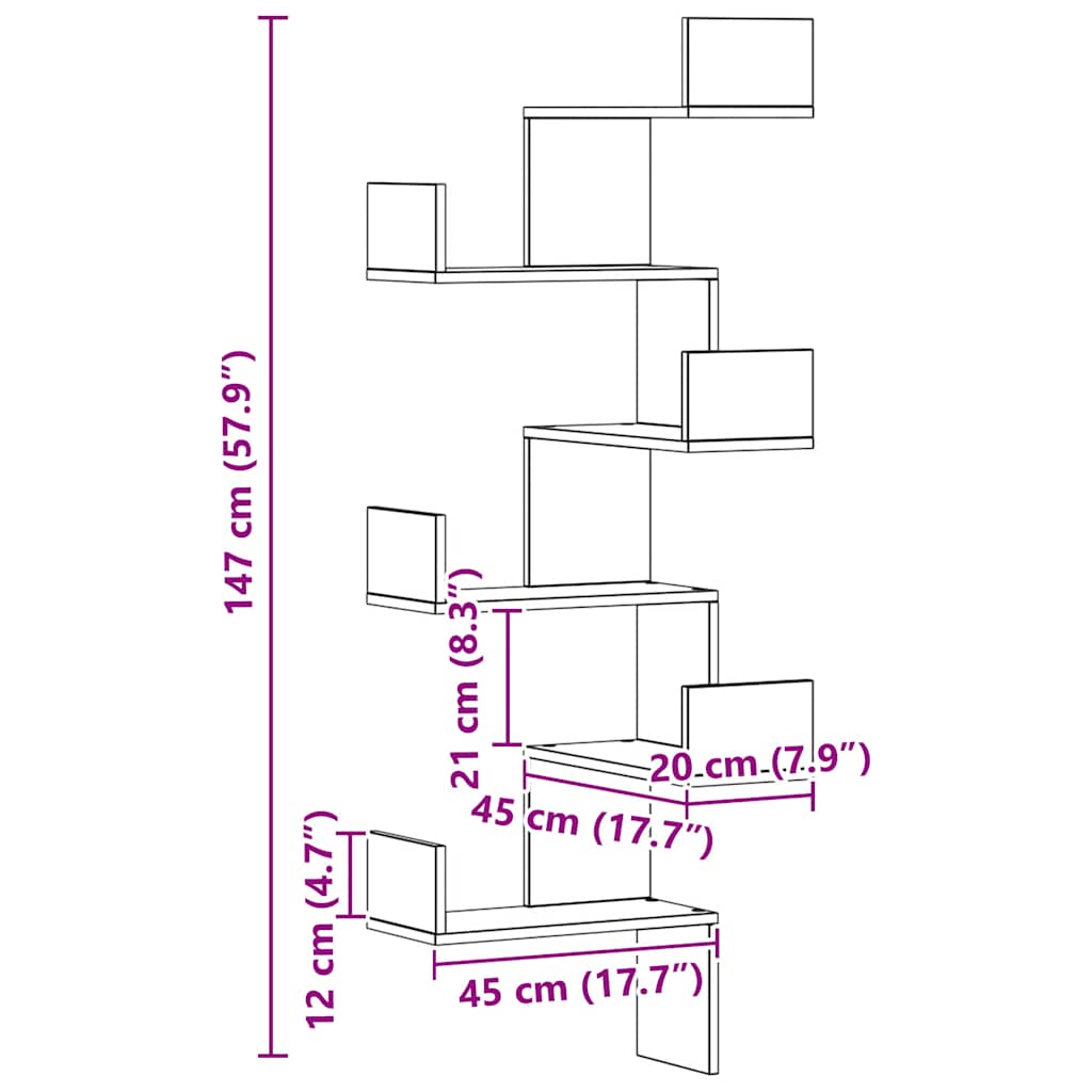 Estante de parede p/ canto derivados madeira carvalho artisiano
