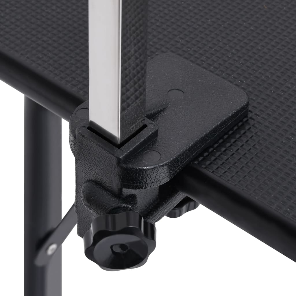 Esta mesa de grooming é suportada por pernas de aço, tornando-a estável e resistente. O grande tampo antiderrapante cria uma superfície confortável para os seus animais de estimação se apoiarem. O braço de grooming em aço inoxidável é ajustável em altura. Assim, pode ajustá-lo à altura perfeita, para se adequar a si e ao tamanho do seu animal de estimação. A mesa é dobrável e fácil de guardar, sendo ideal para quem faz serviços de grooming ao domicilio, bem como para utilização residencial. Possui um cesto debaixo do tampo que pode ser utilizado para armazenar os artigos diários dos animais. Os cantos arredondados evitam lesões.