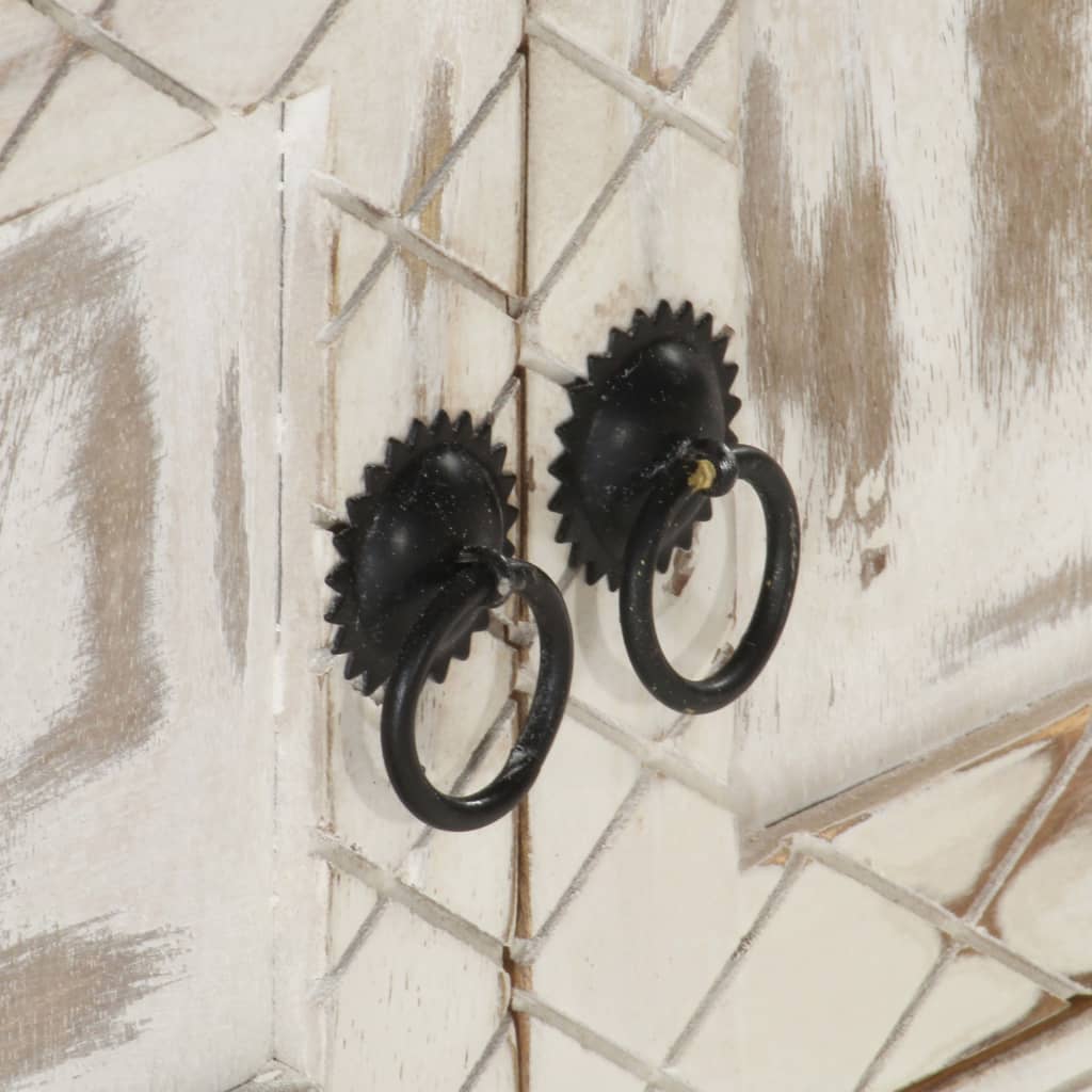 Este suporte de TV é feito em madeira de mangueira maciça e apresenta uma linda lavagem a branco. Cada etapa do processo é realizada com o máximo cuidado, seja o polimento, a pintura ou o envernizamento. Com 4 portas, este móvel oferece um amplo espaço para arrumar os seus aparelhos multimédia, livros e vários outros artigos.