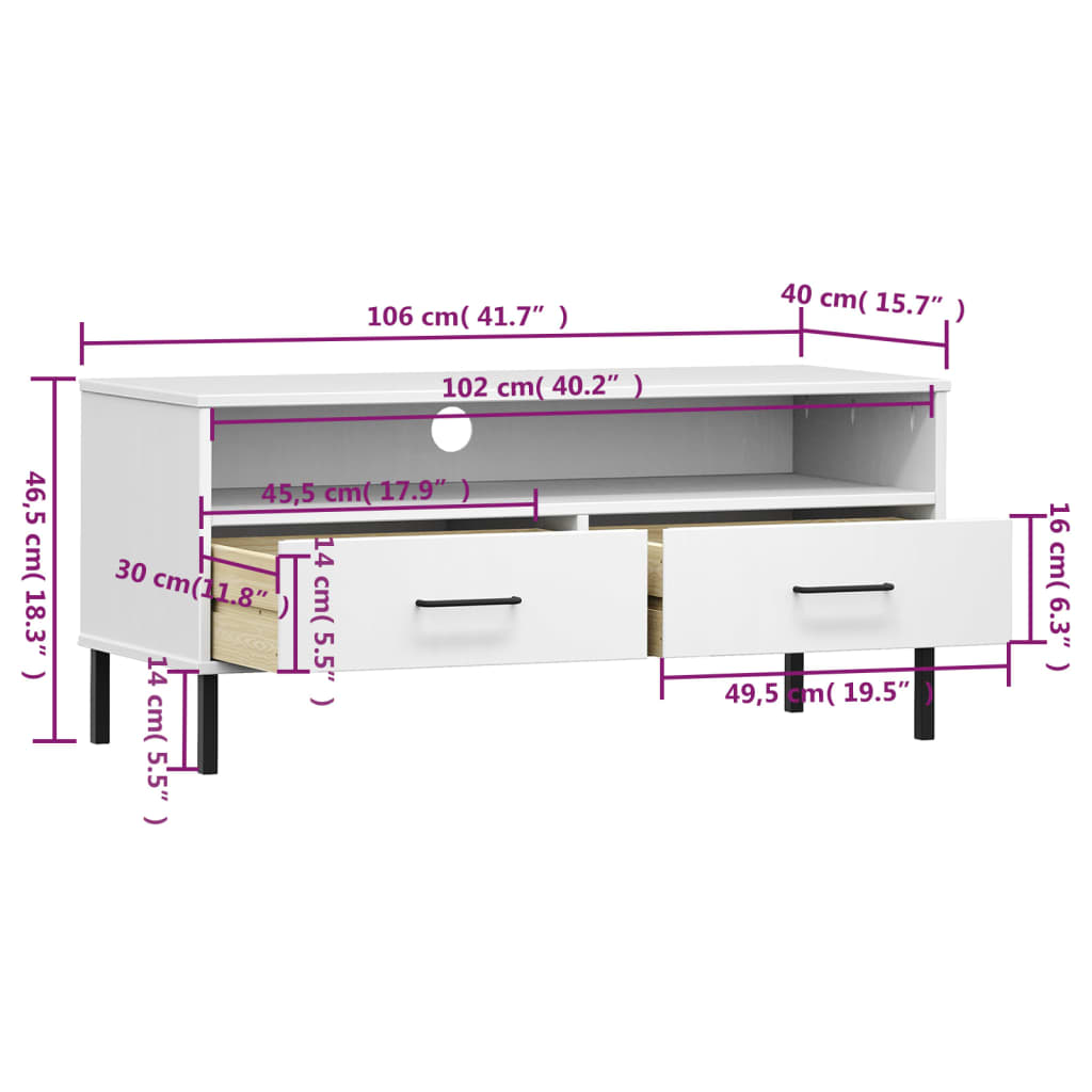 Móvel de TV c/ pernas de metal pinho maciço OSLO branco