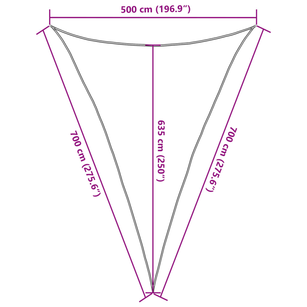 Para-sol estilo vela 5x7x7 m oxford 100% poliéster cinza-claro