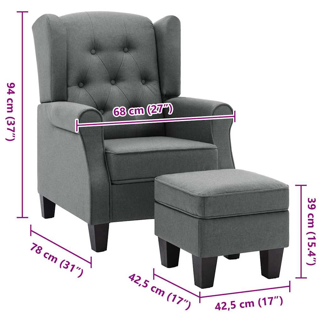 Poltrona com apoio de pés tecido cinzento-claro