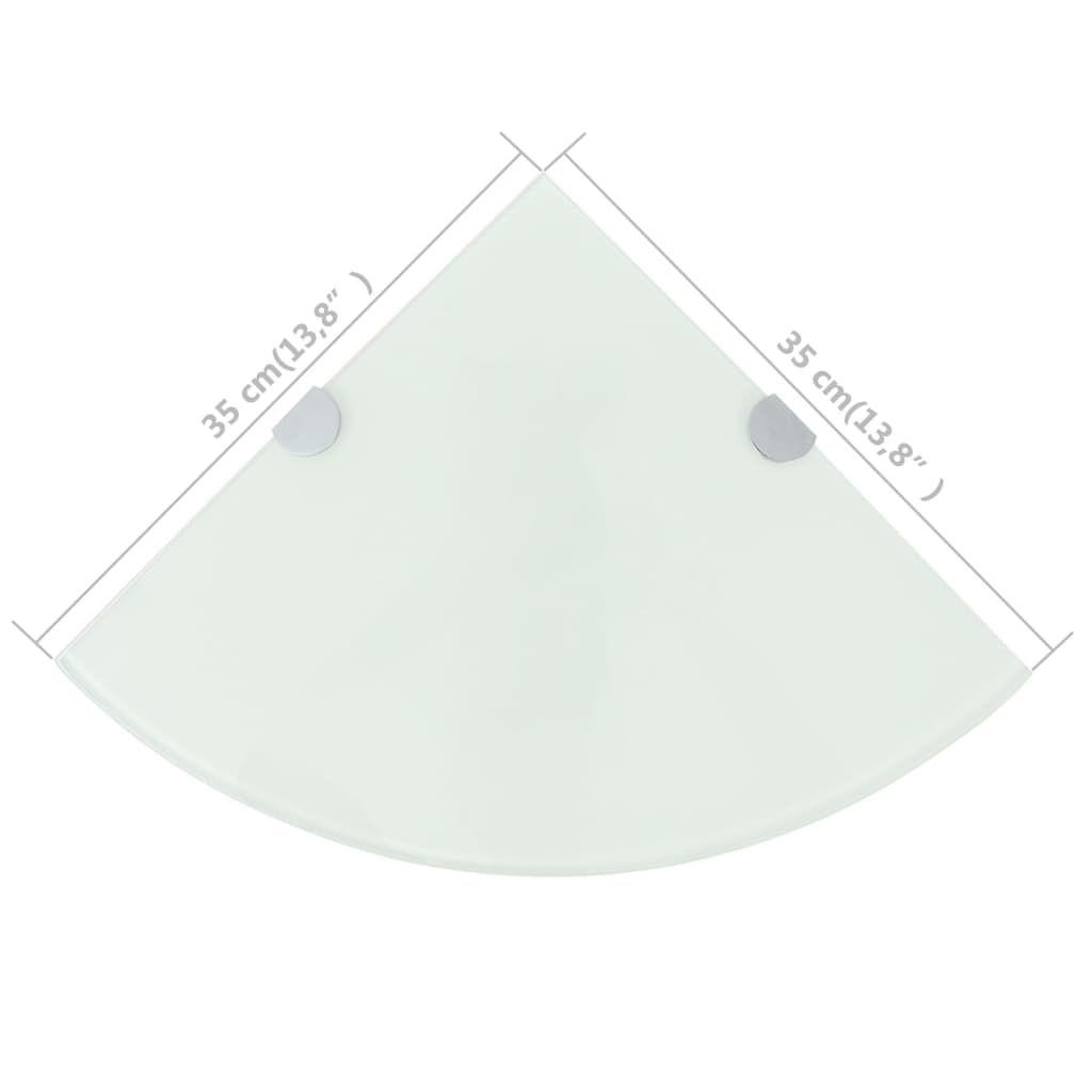 Prateleira canto, suportes cromados, vidro branco 35x35cm