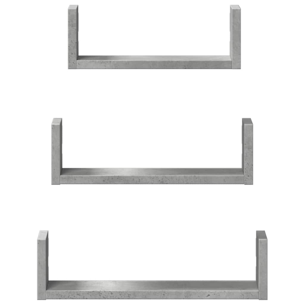 Prateleira de parede 3pcs derivados de madeira cinzento cimento