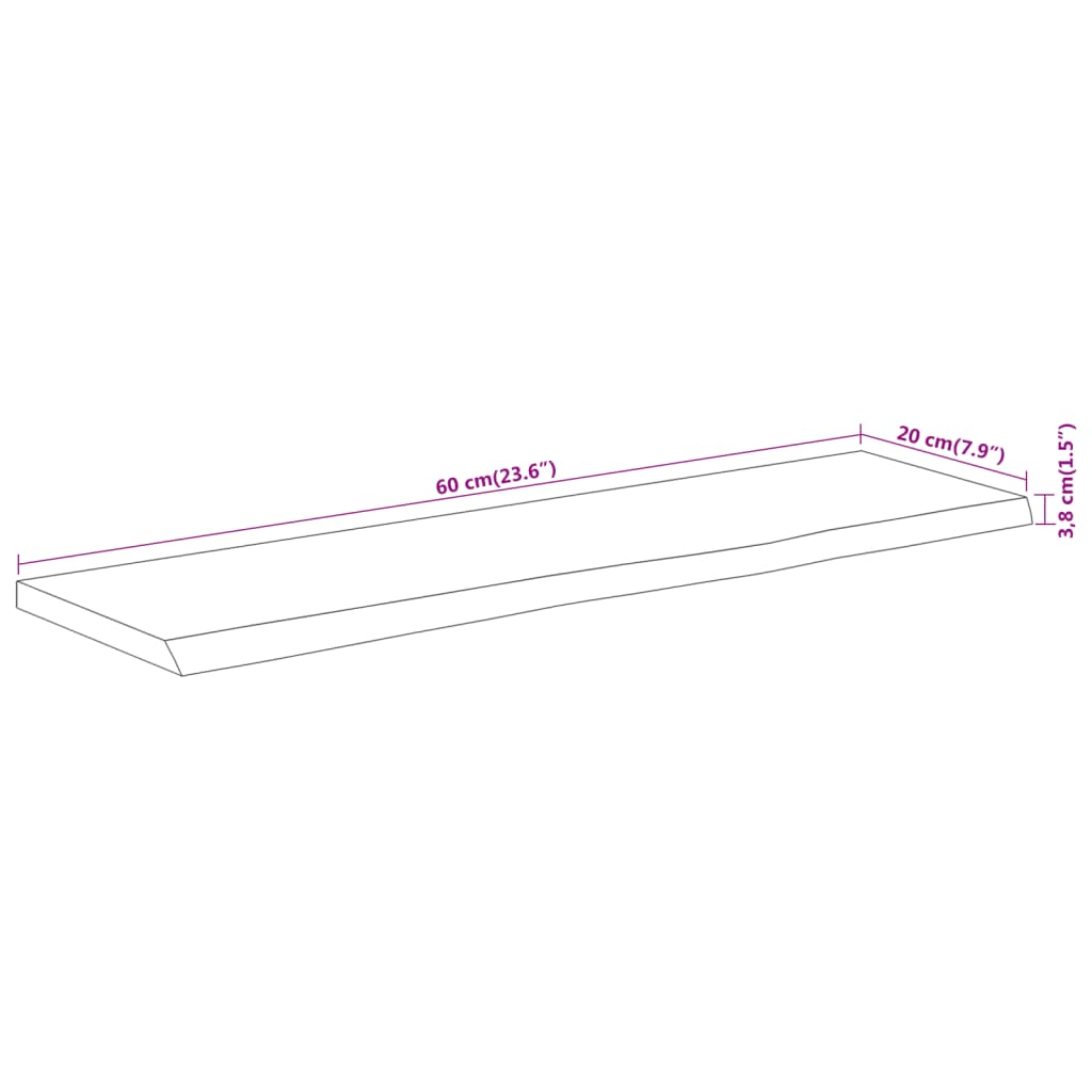 Prateleira de parede retangular 60x20x3,8 cm acácia maciça