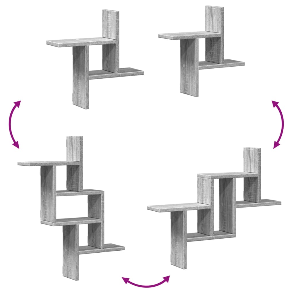 Prateleiras de parede 2 pcs derivados madeira cinzento sonoma