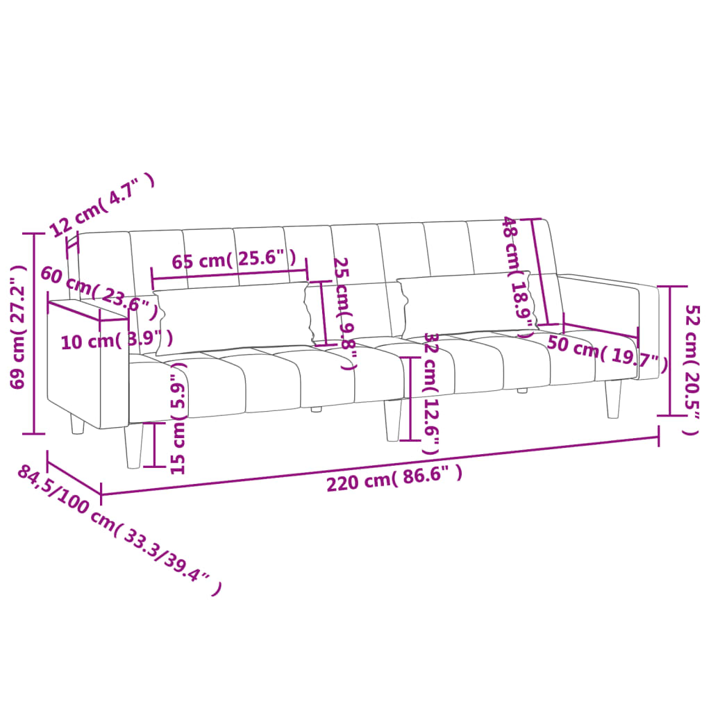 Sofá-cama 2 lugares c/ duas almofadas tecido cinza-acastanhado