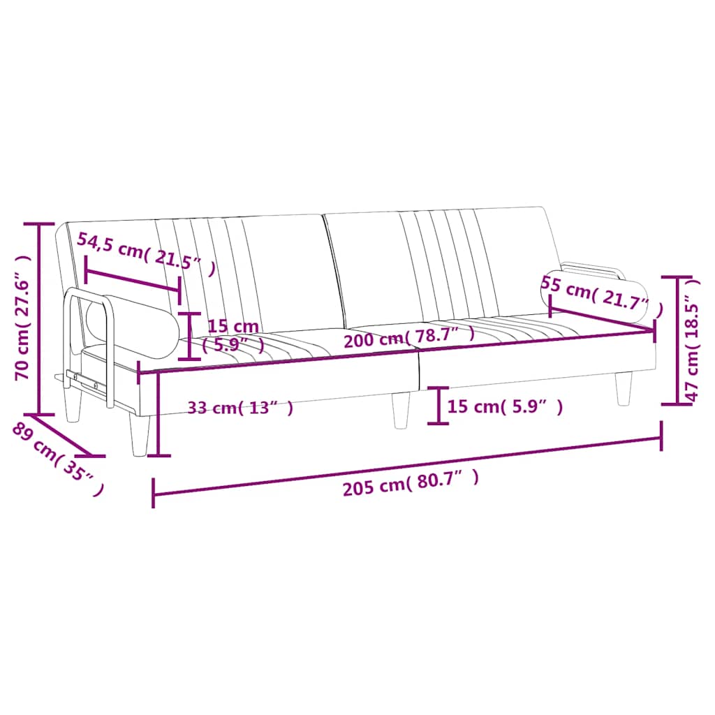 - Encosto ajustável: pode empurrar os dois almofadões separados do sofá-cama para trás, parcialmente, ou completamente para baixo para criar um local ideal para uma soneca ou uma cama de solteiro.