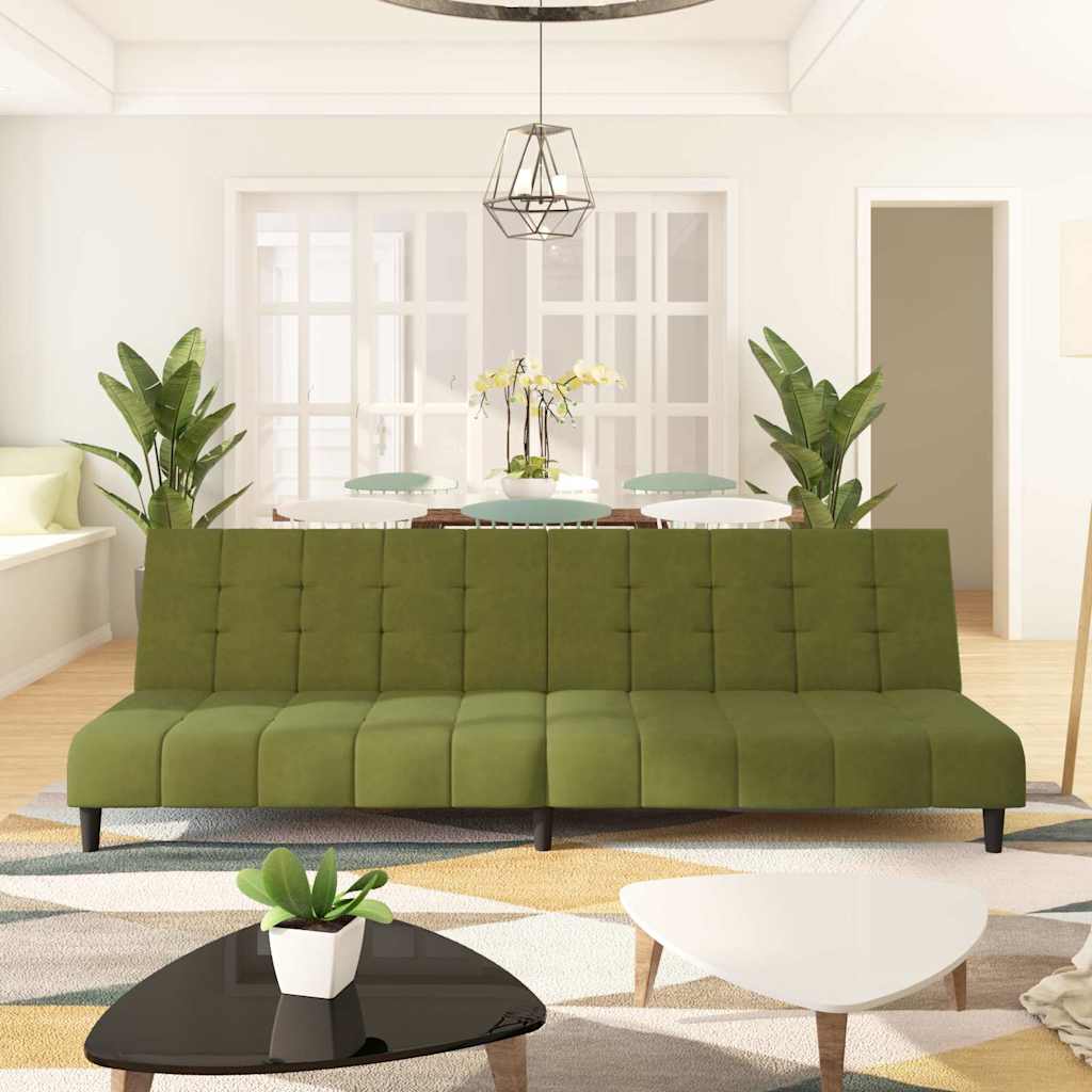 Sofá-cama de 2 lugares veludo verde-claro