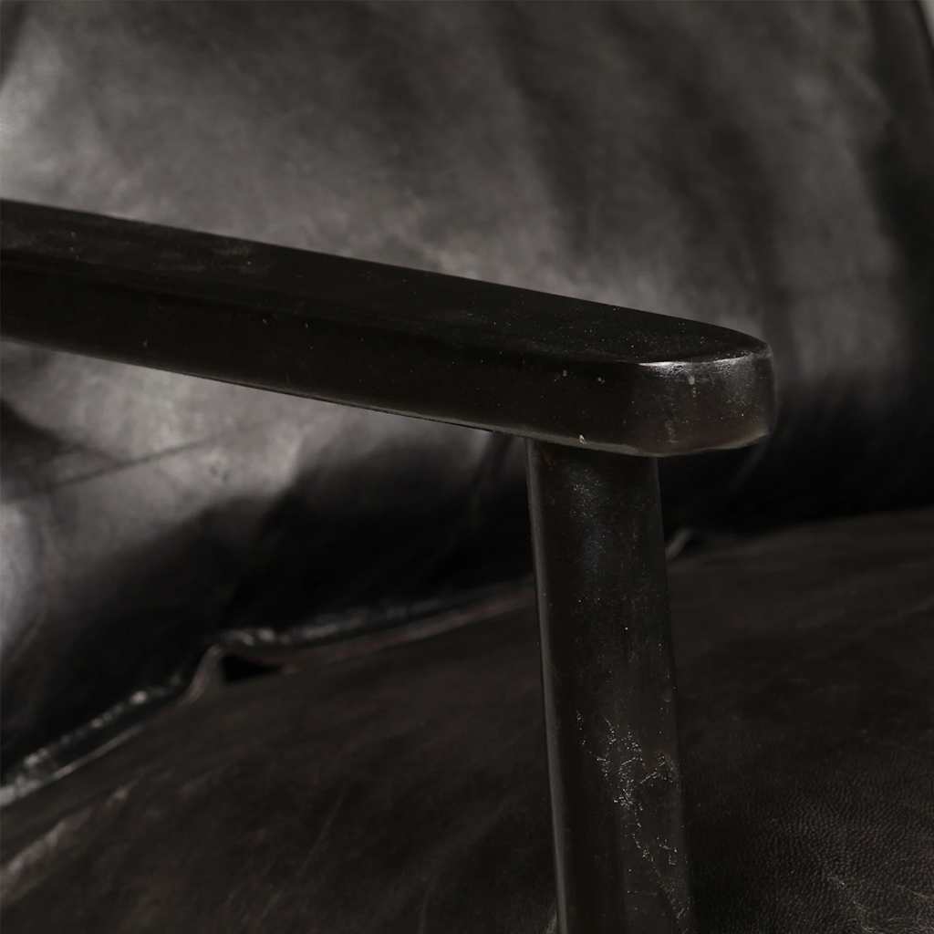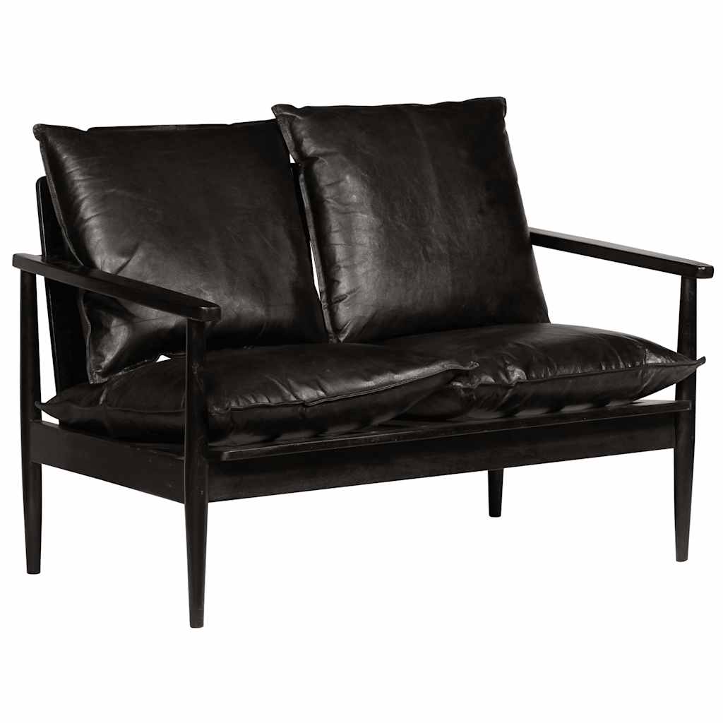 Sofá de 2 lugares couro genuíno c/ madeira de acácia preto