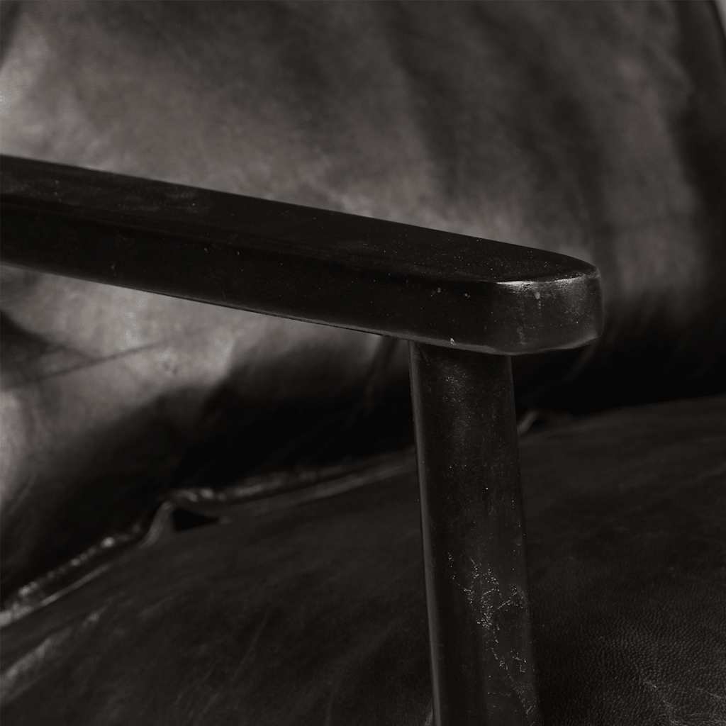 O sofá é feito em madeira de acácia maciça que recebeu um bonito acabamento a mel por polimento, pintura e envernizamento para lhe ser proporcionado um aspeto requintado. Este sofá foi estofado com couro de cabra macio e acolchoado com espuma espessa para uma excelente experiência de assento.