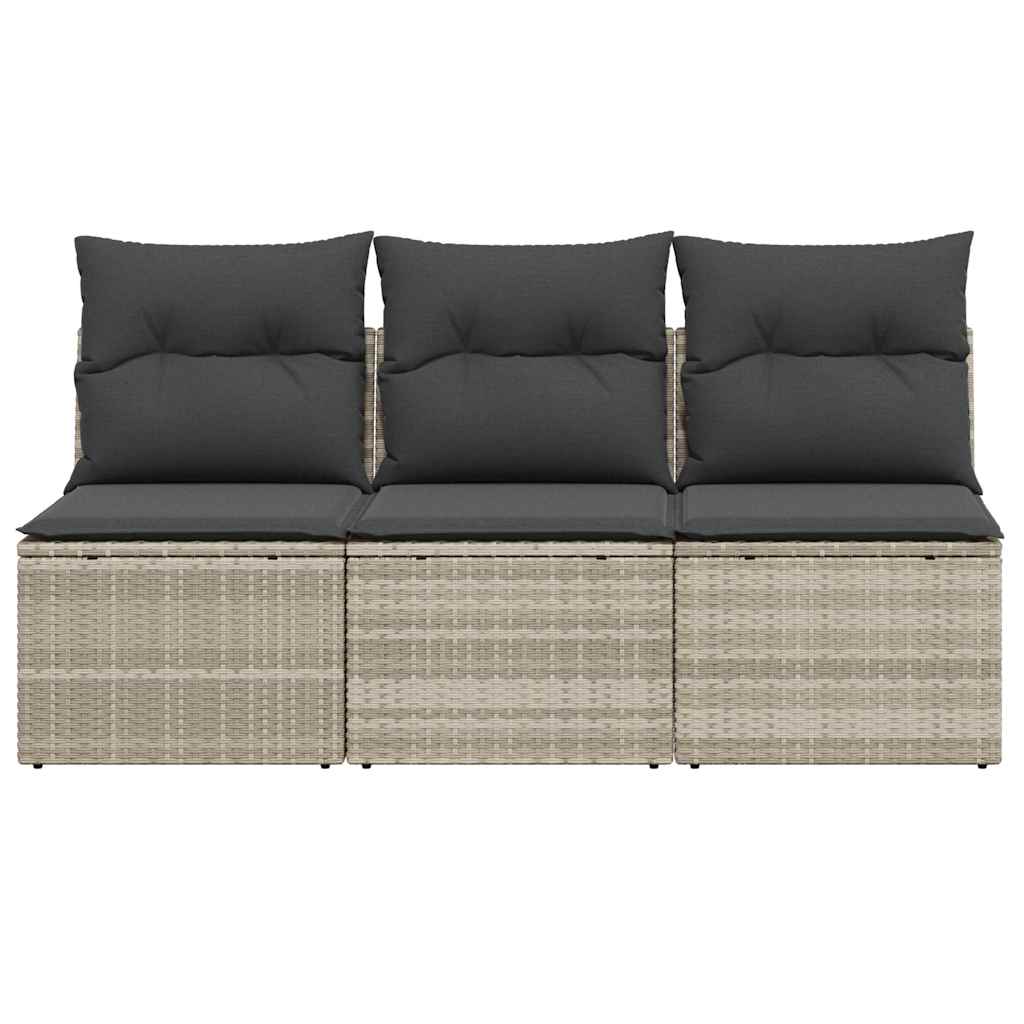 Sofá de jardim de 3 lugares c/ almofadões vime PE cinza-claro