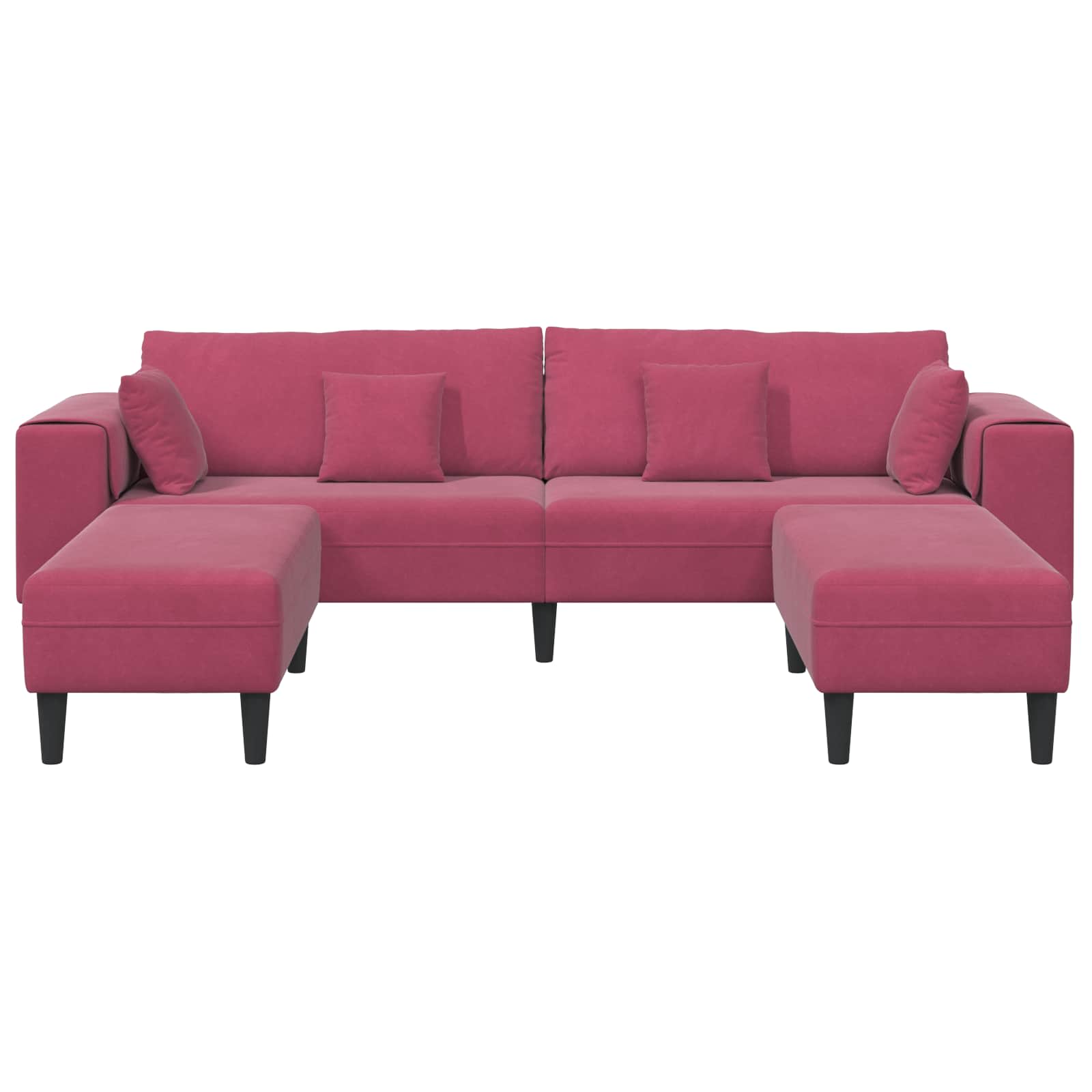 Sofá com almofada 3 pcs Vinho Vermelho Veludo