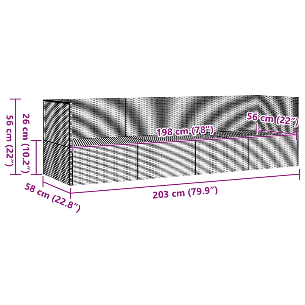 - Material durável: o vime PE é um material excecionalmente resistente e durável, capaz de suportar diferentes condições climatéricas. Requer pouca manutenção.