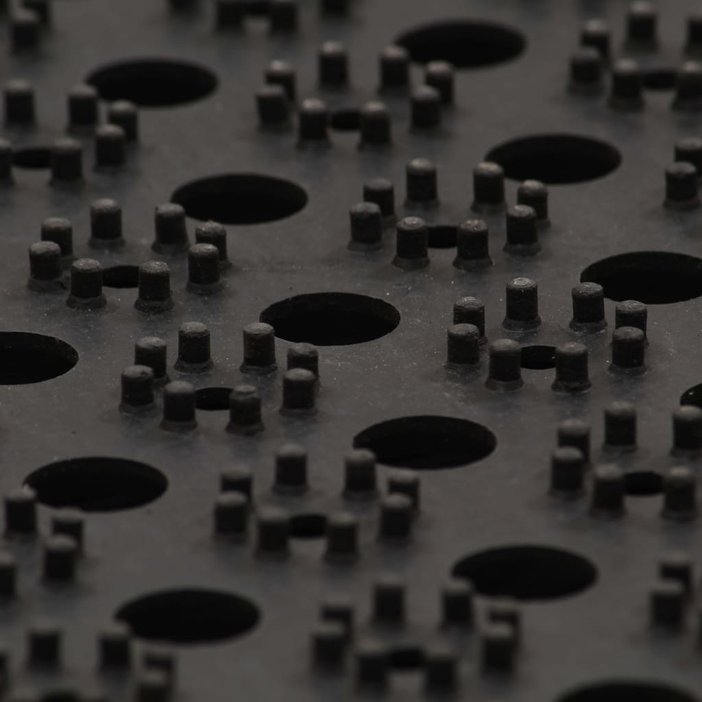 - Material durável: o tapete para porta de entrada é feito de borracha flexível, que absorve os choques e é resistente ao desgaste, garantindo durabilidade e resistência a manchas.