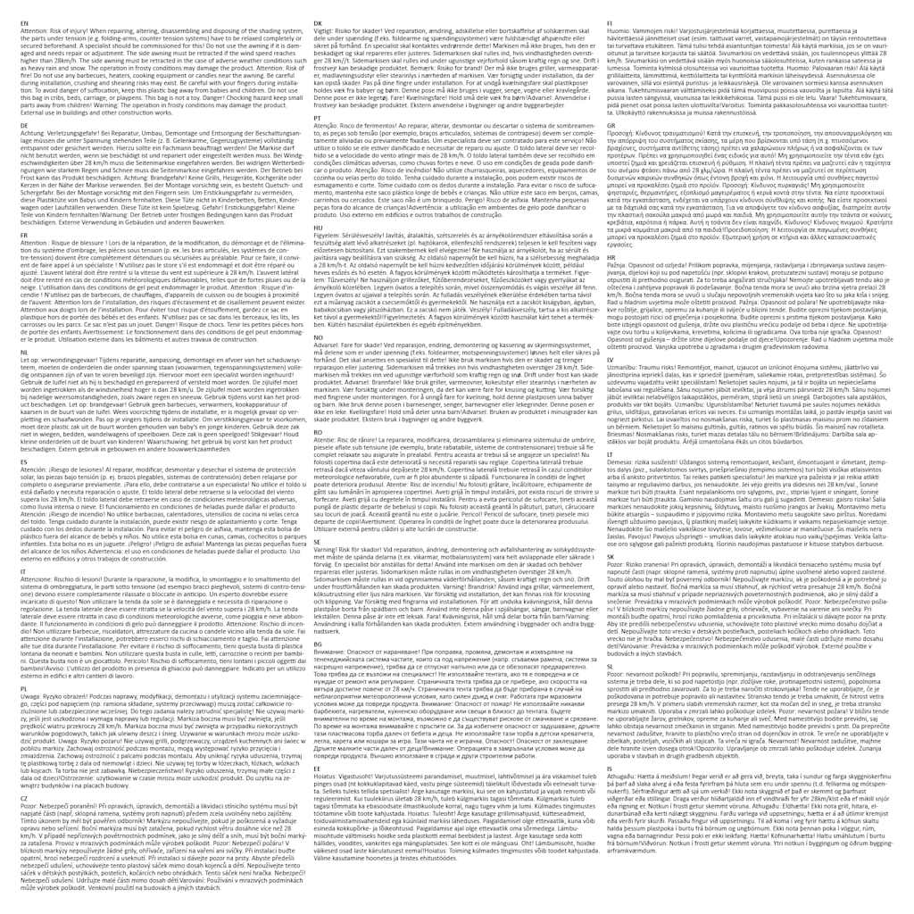 A tela é feita em poliéster resistente aos raios UV e rasgões. A cassete foi instalada numa base de aço resistente, na posição vertical, e o toldo retrátil pode ser facilmente puxado para fora. O toldo possui também função de reversão automática. O toldo da varanda é fácil de montar.
