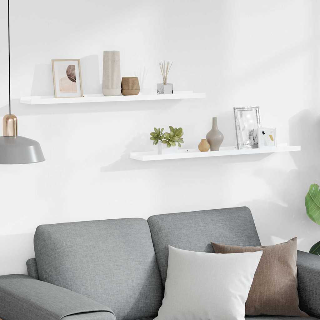 Unidade de prateleiras com rebordo 2 pcs 80x9x3 cm MDF branco