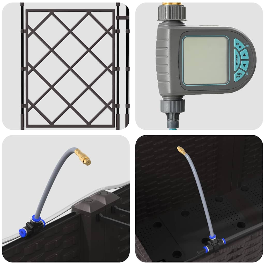- Sistema de Irrigação Embutido: Equipado com um sistema de irrigação avançado, este vaso de jardim elimina a incerteza do regar. Utilizando canais embutidos, ele distribui água de forma eficiente diretamente para as raízes das plantas, garantindo que elas recebam umidade adequada enquanto reduz o desperdício de água e apoia um crescimento mais saudável.