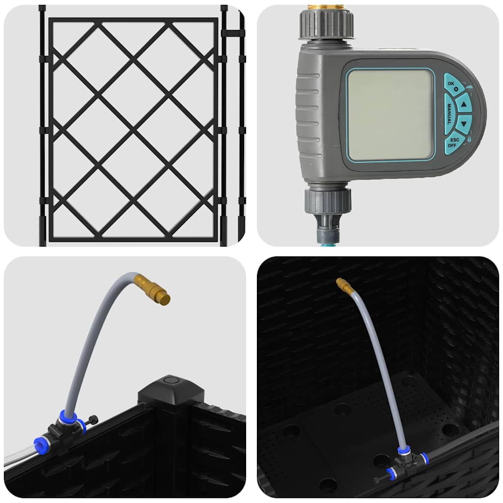 • Sistema de Irrigação Embutido: Equipado com um sistema de irrigação avançado, este vaso de jardim elimina a incerteza do regar. Utilizando canais embutidos, ele distribui água de forma eficiente diretamente para as raízes das plantas, garantindo que elas recebam umidade adequada enquanto reduz o desperdício de água e apoia um crescimento mais saudável.